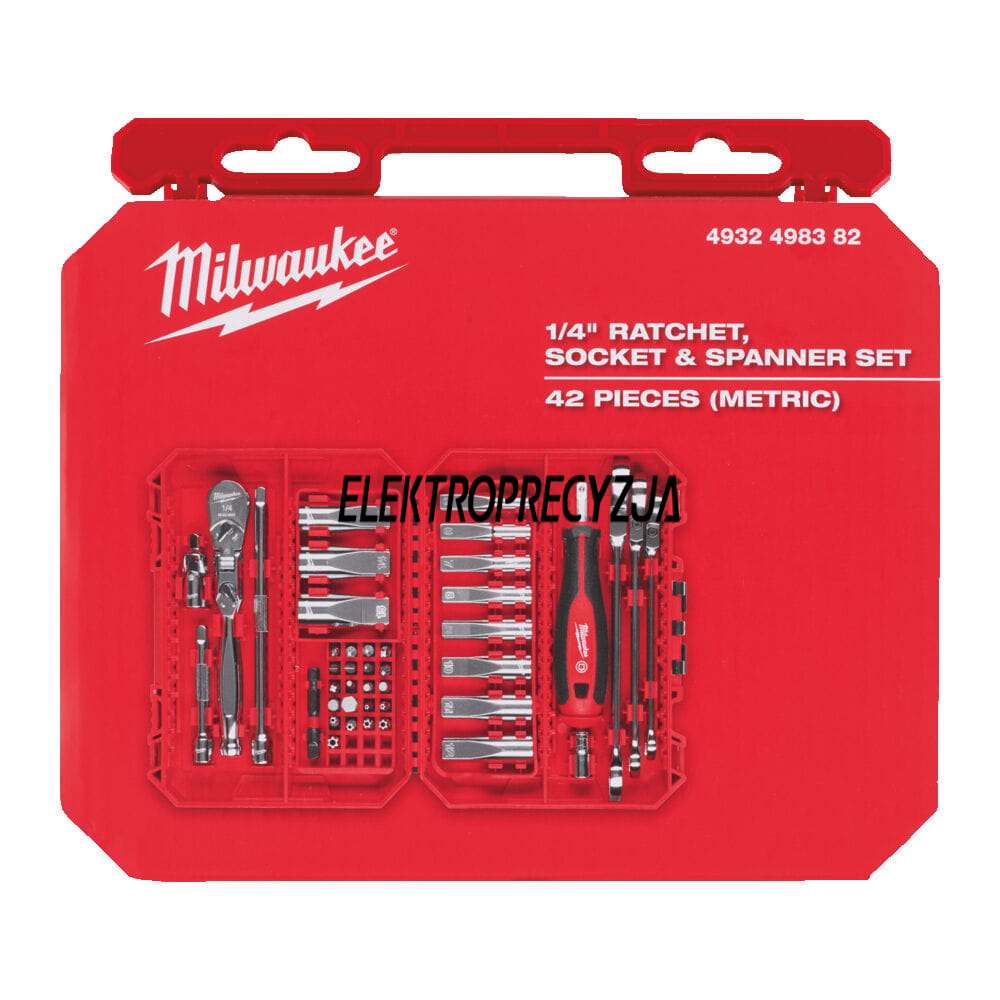Zestaw: Grzechotka, nasadki 1/4“ i bity udarowe 42