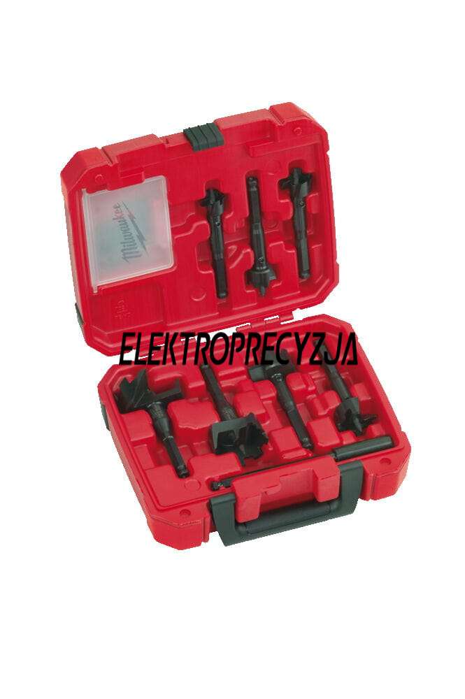 Zawiera: Wiertła samoposuwne ⌀ 25 / 29 / 32 / 38 / 44 / 54 / 65 mm, przedłużka o długości 140 mm i śruby pociągowe