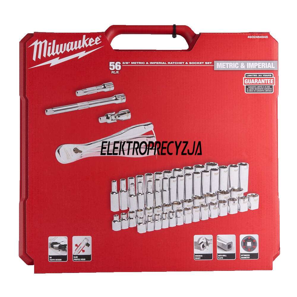 - Mechanizm grzechotki z 90 zębami (skok roboczy 4°) umożliwia pracę w ciasnych przestrzeniach.