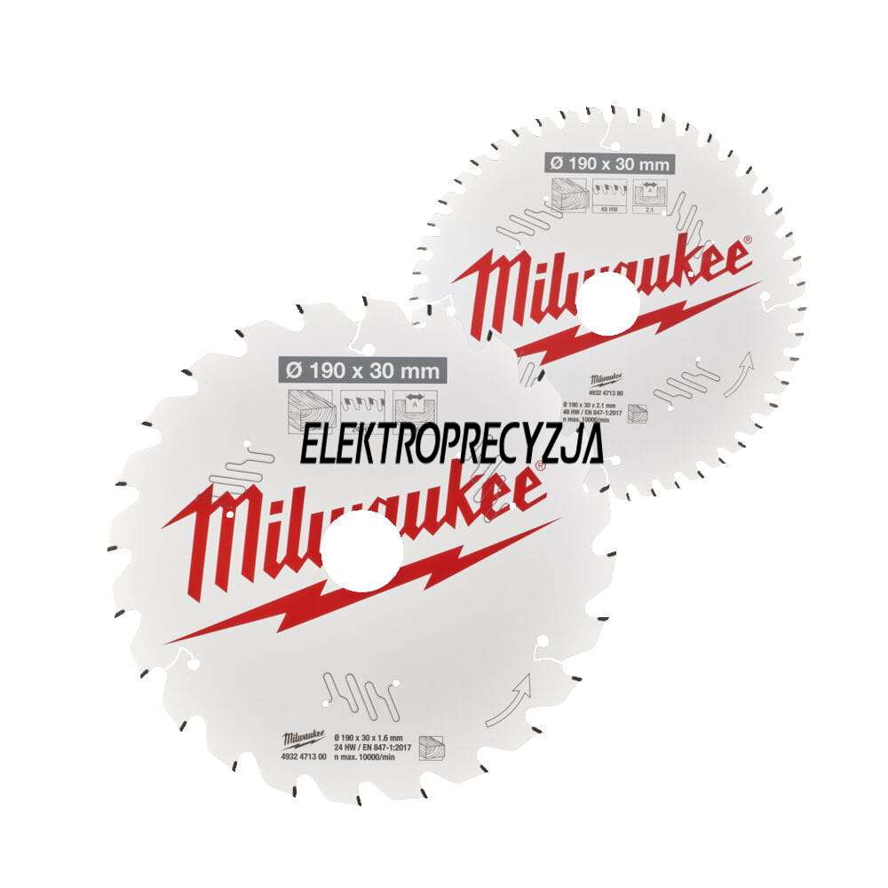 Zawiera: 1 x tarcza do szybkiego cięcia drewna 190x30x24 zęby (4932471300) + 1 x tarcza do czystego cięcia drewna 190x30x48 zębów (4932471380)