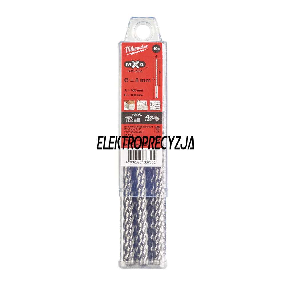 Zestaw wierteł 4-ostrzowych/8 x 160mm