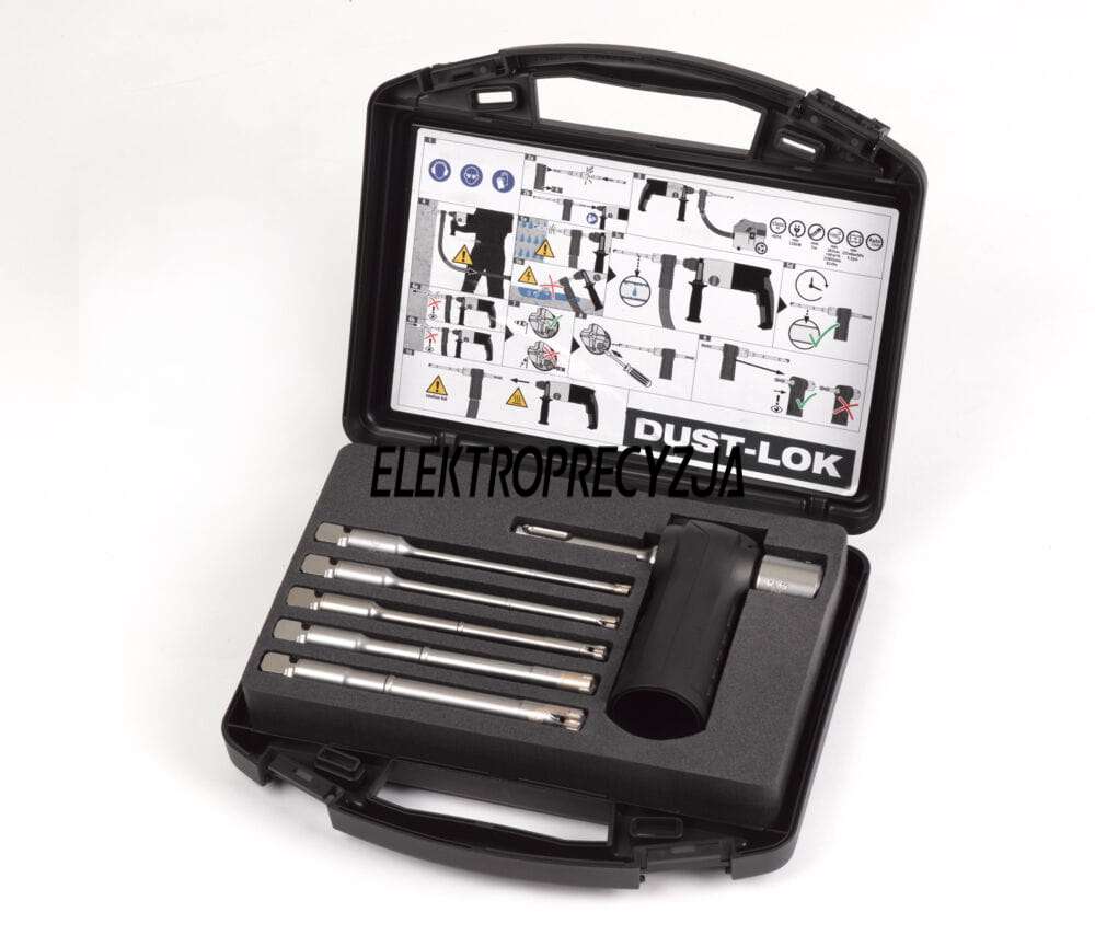 - Zatrzymuje 99% pyłu powstałego przy wierceniu.